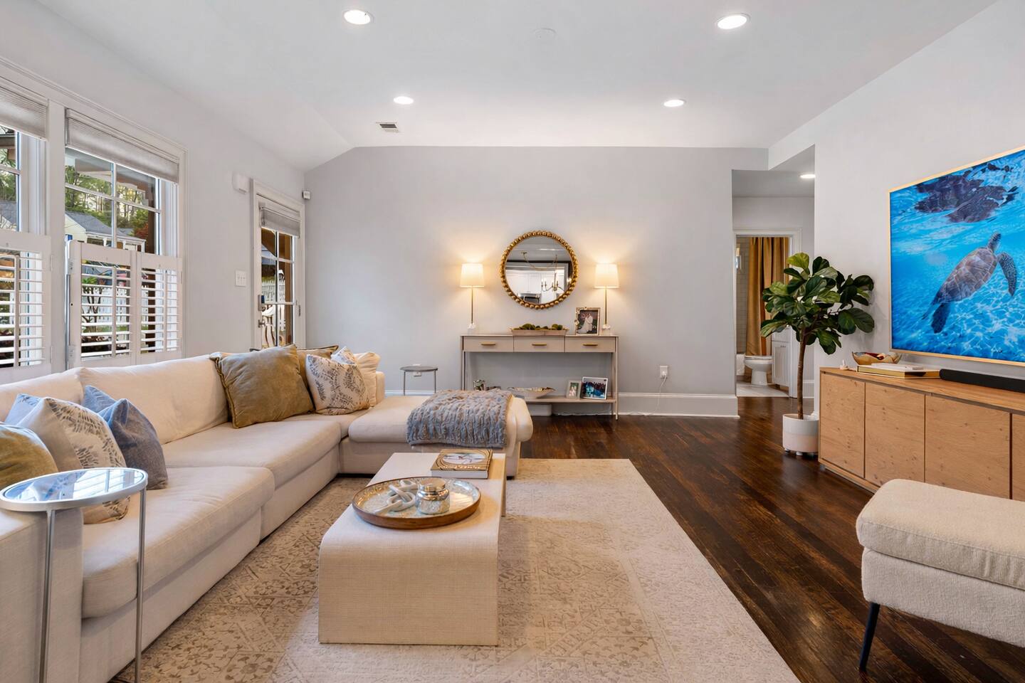 You can access your space 24/7 via our custom-coded keypad deadbolt locks. Please note that for your security our home has a Vivint video doorbell camera and a security camera that monitors the back yard. There is a separate guest house on the property that can be separately reserved. The guest house is completely independent, with its own private entrance and a full privacy fence that fully separates it from the main home. Guests in each space do not share any outdoor areas, and can confidently assure you that the level of privacy is comparable to that of neighboring properties. Guests that book the main house do not have access to the guest house, and vice versa. Guests of the guest house will not be allowed to park in the driveway, but will use the driveway to access their reserved guest house space. *Both the main home & guest home can be booked together, if available for your desired dates. Inquire if you are interested. During your stay: • We provide a starter supply of essentials: • Kitchen: Coffee, olive oil, salt, pepper • Bath: Shampoo, conditioner, body wash, lotion, toilet paper, and paper towels